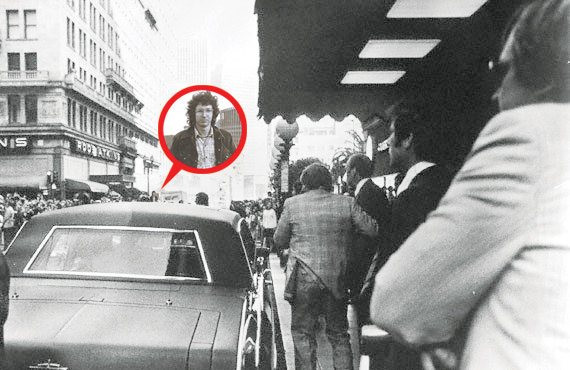 I pushed my way through the crowd to the front of the hotel. It was wall-to-wall people, so I crossed the street and stood beside a street light, about a half-block away from where President Ford would exit the hotel. His limo was idling in front of the entrance, surrounded by black cars and police motorcycles.