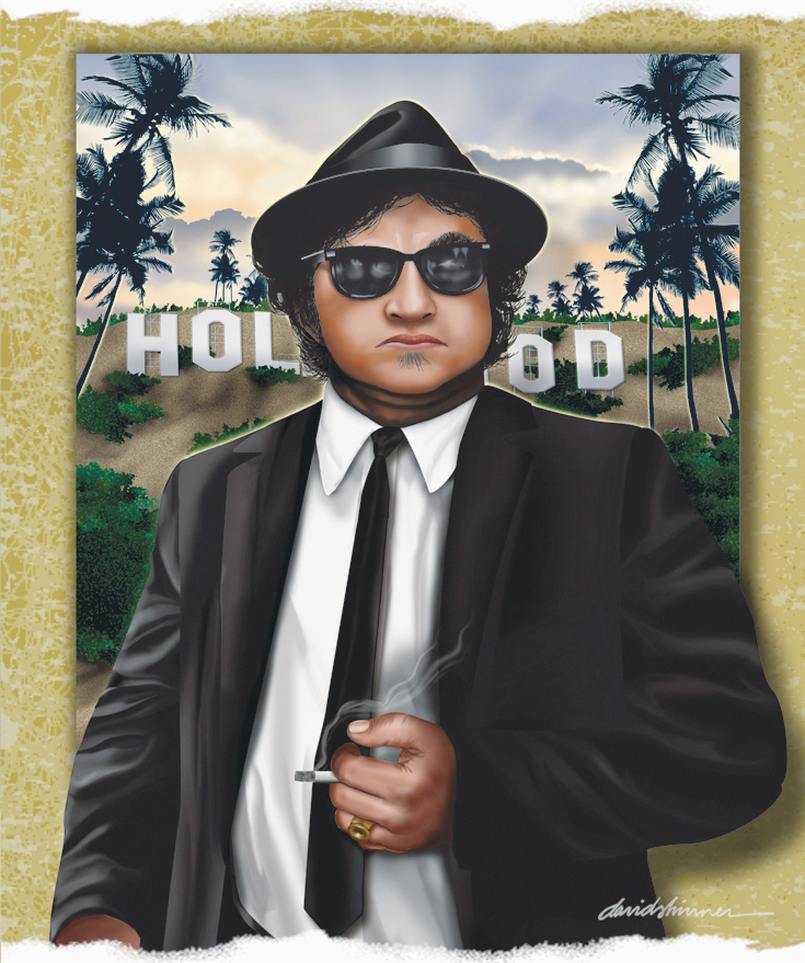 Over the past year or so, I’ve gone back and resurrected projects from my past that I wanted to digitally illustrate (or re-illustrate) using Adobe Illustrator and Photoshop; the “Hollywood Belushi” picture was the most recent one to fall into this category. So, with one fell swoop, I’ve gotten to “do” what I was told “don’t do”—I’ve done my own illustration and I’ve included a drug reference in the same illustration. Actually, the original “Hollywood Belushi” art that Mick did all those years ago included the same subtle drug reference—right over Belushi’s left shoulder and right under the editor’s nose. Even back then, I felt like it was only right to spell out the two things that helped end the life of one of our generation’s most brilliant comics. All it took was to use the deceptively-welcoming iconic sign in the background. And, besides, “OD” spelled backwards is, of course, DO.